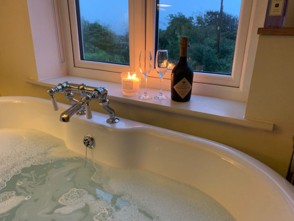 Relax in the hot tub, which fits up to 6 people